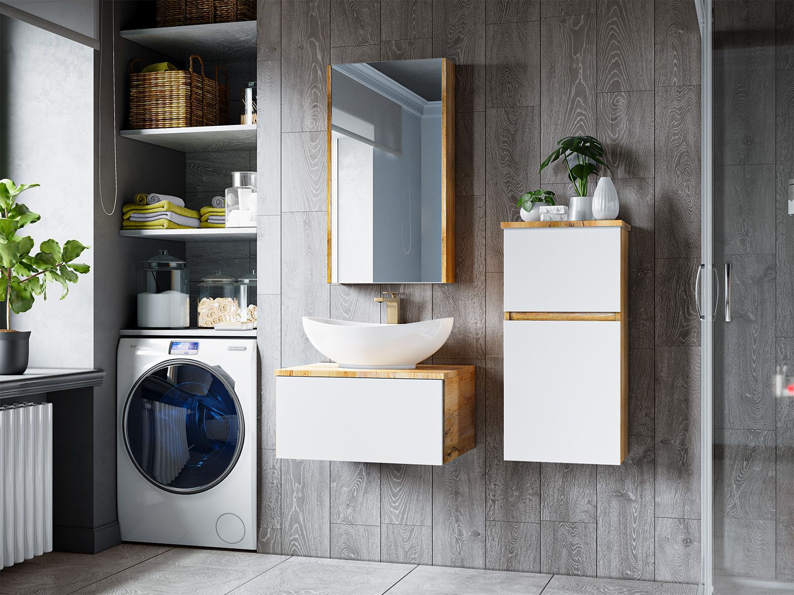 Подвесная тумба под раковину Misty Ива 80см белый/дуб Вотан