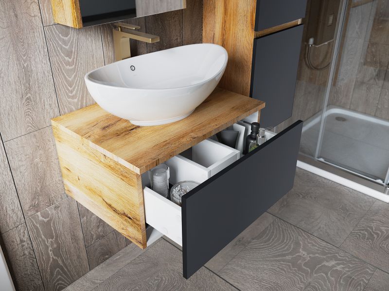Подвесная тумба под раковину Misty Ива 90см графит/дуб Вотан