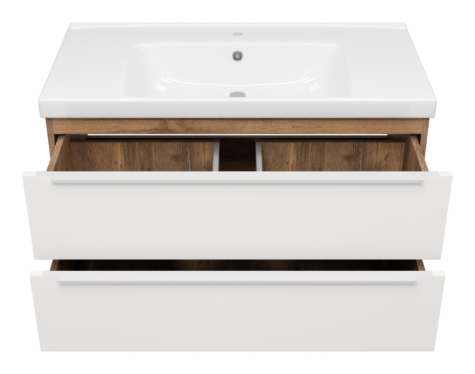 Подвесная тумба под раковину Misty Карат 100см белый/дуб Галифакс олово