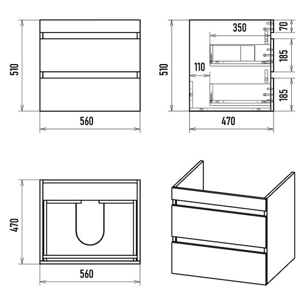 Габариты корпуса тумбы (ШхВхГ): 560х510х470 мм.