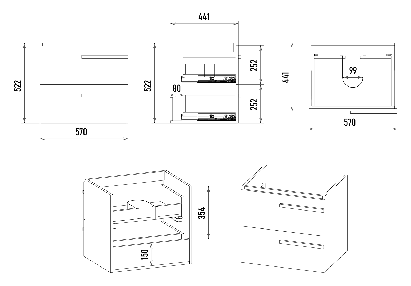 Подвесная тумба под раковину Misty Ненси 60см серый