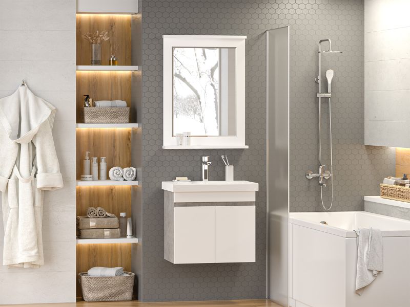 Подвесная тумба под раковину Misty Ронда 60см белый/бетон Чикаго светло-серый