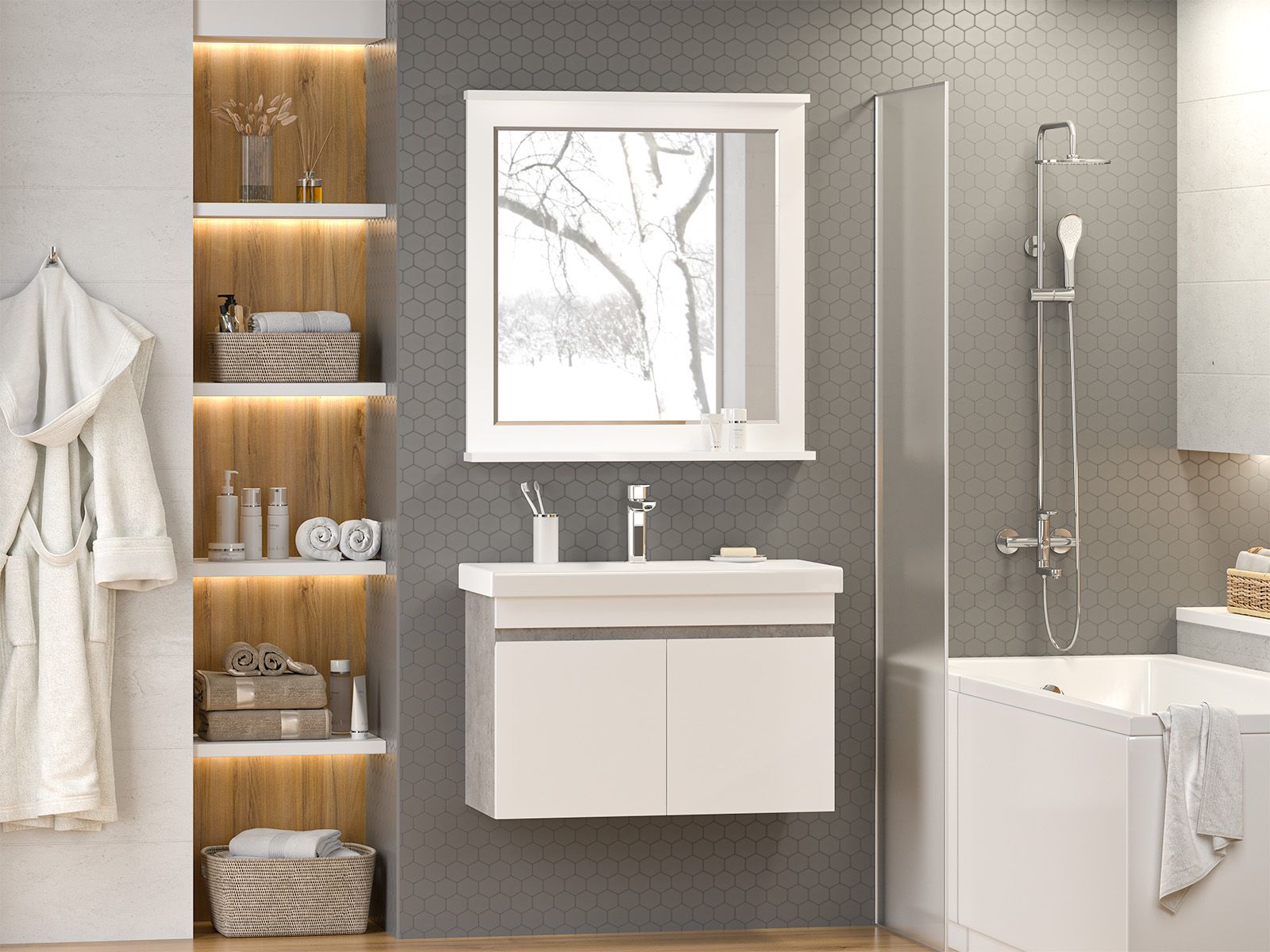Подвесная тумба под раковину Misty Ронда 80см белый/бетон Чикаго светло-серый купить