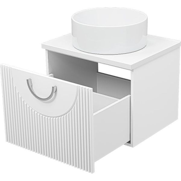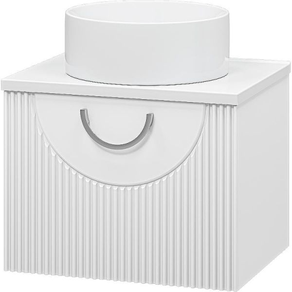 Цвет: белый матовый. Материал корпуса: ЛДСП. Материал фасада: МДФ. Покрытие корпуса и фасада: эмаль матовая. Габариты корпуса тумбы (ШхВхГ): 590х440х464 мм. Система хранения: выдвижной ящик. Оснащение: направляющие с доводчиками скрытого монтажа. Цвет фурнитуры: хром. Монтаж: подвесной.