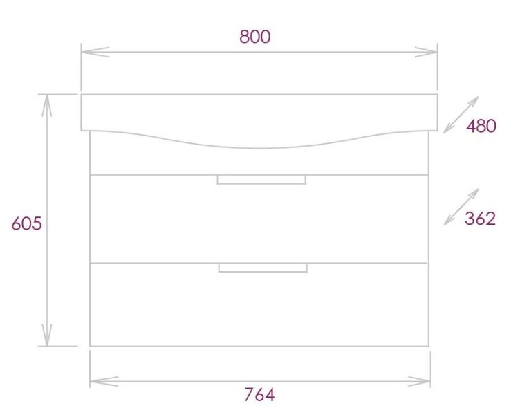 Размеры тумбы без учета раковины: 76х36х50см.