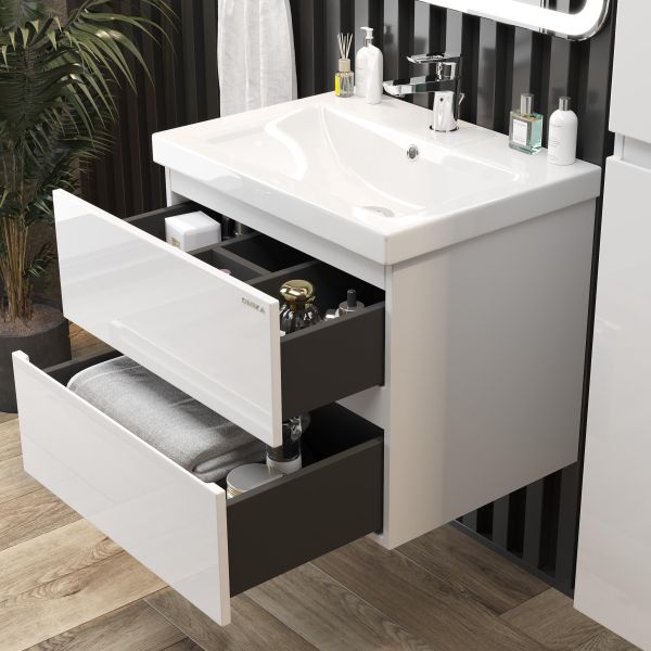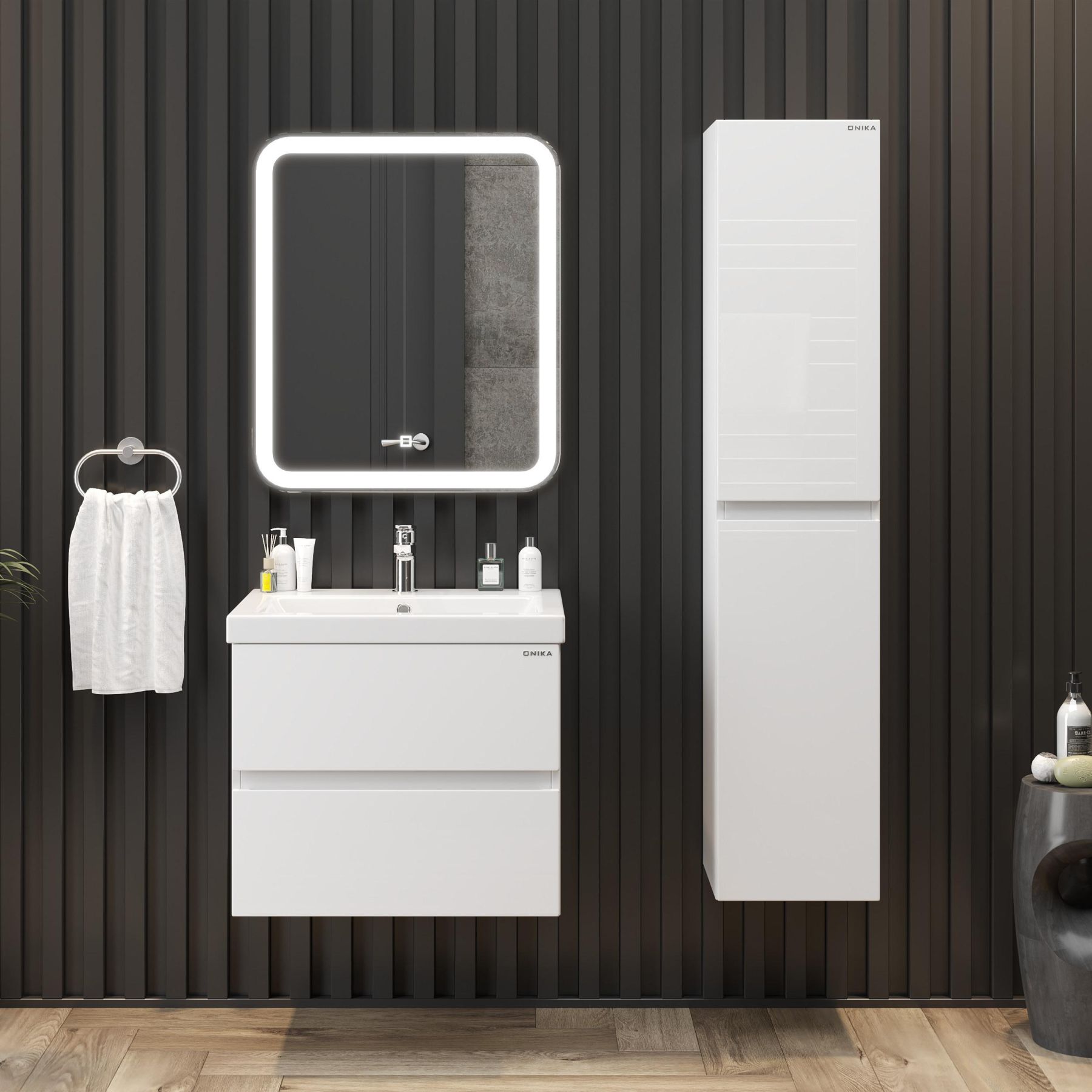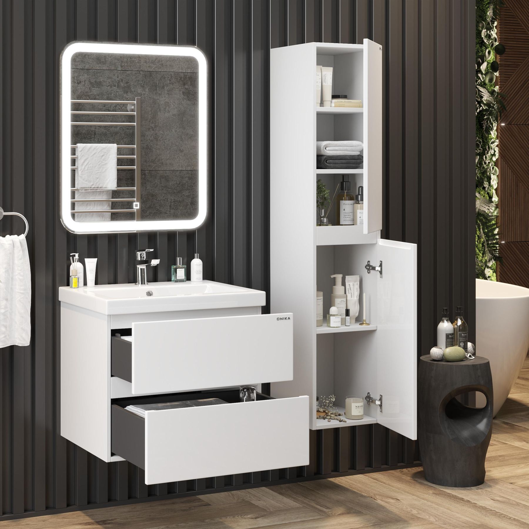 Подвесная тумба для ванной комнаты Onika Эвада 70 сочетает в себе стильный минималистичный дизайн, белую глянцевую поверхность и высочайшее качество исполнения.