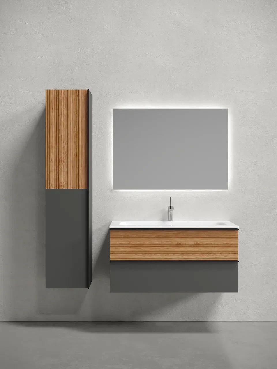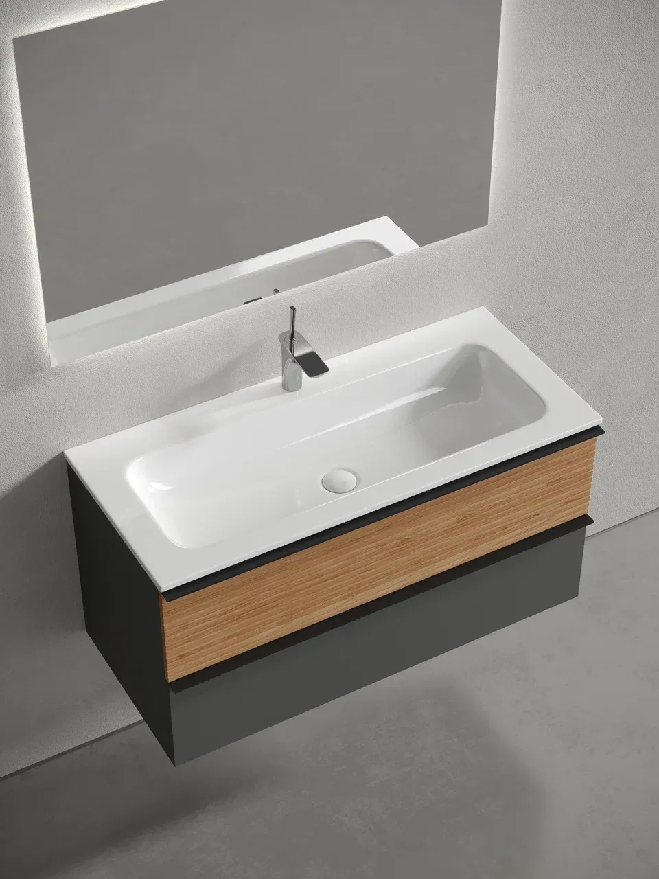 Подвесная тумба под раковину Sancos Delta DL100GR 100см дуб красный/графит купить