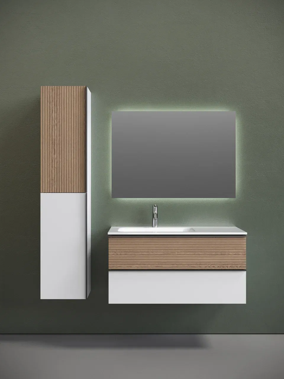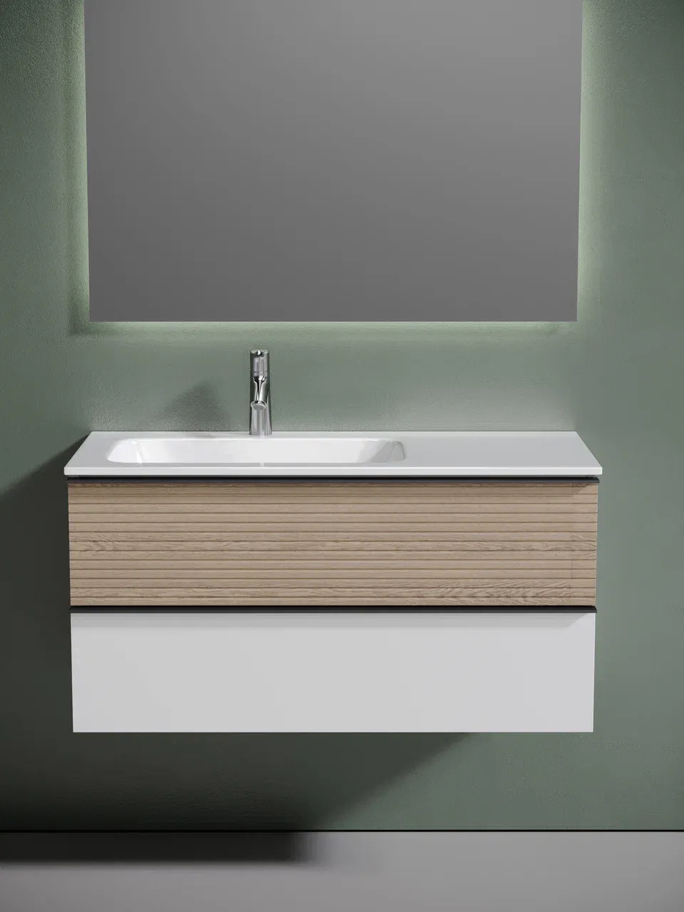 Подвесная тумба под раковину Sancos Delta DL100LW левая 100см дуб светлый/белый купить