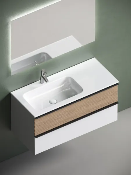 Подвесная тумба под раковину Sancos Delta DL100LW левая 100см дуб светлый/белый
