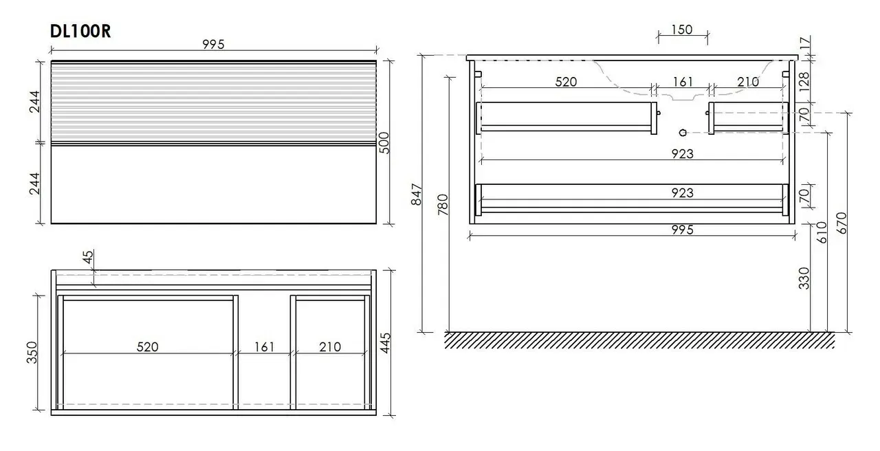 Подвесная тумба под раковину Sancos Delta DL100RGR правая 100см дуб красный/графит