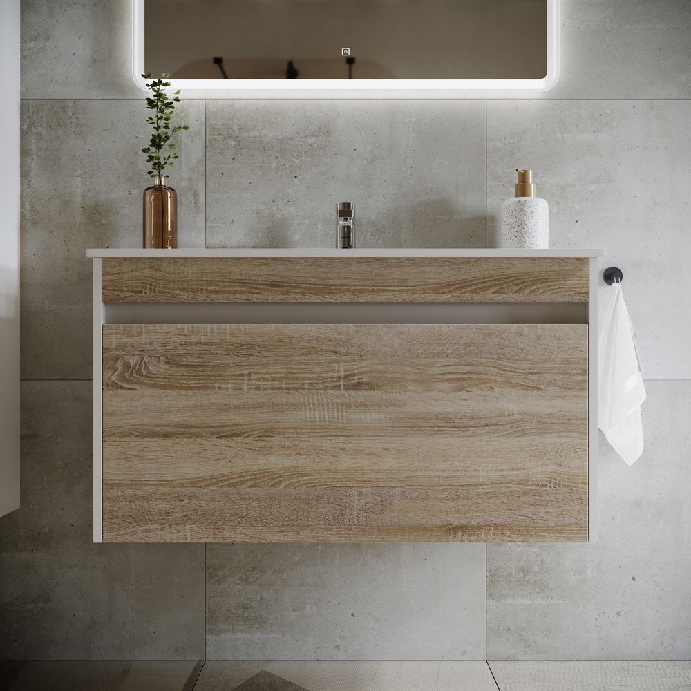 Подвесная тумба под раковину Sancos Smart SM90E 90см дуб бардолино/белый