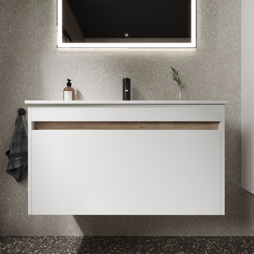 Подвесная тумба под раковину Sancos Smart SM90W 90см белый глянец
