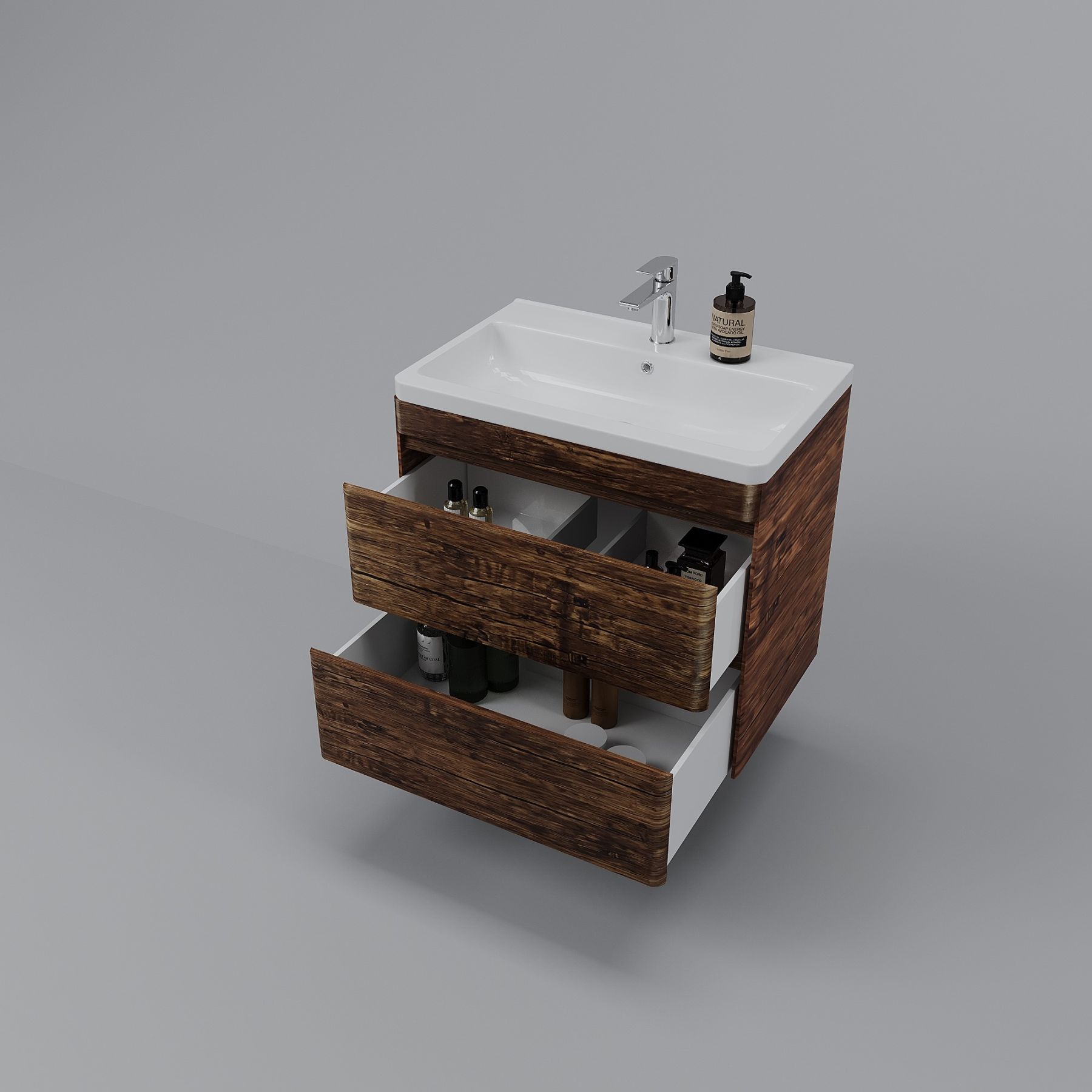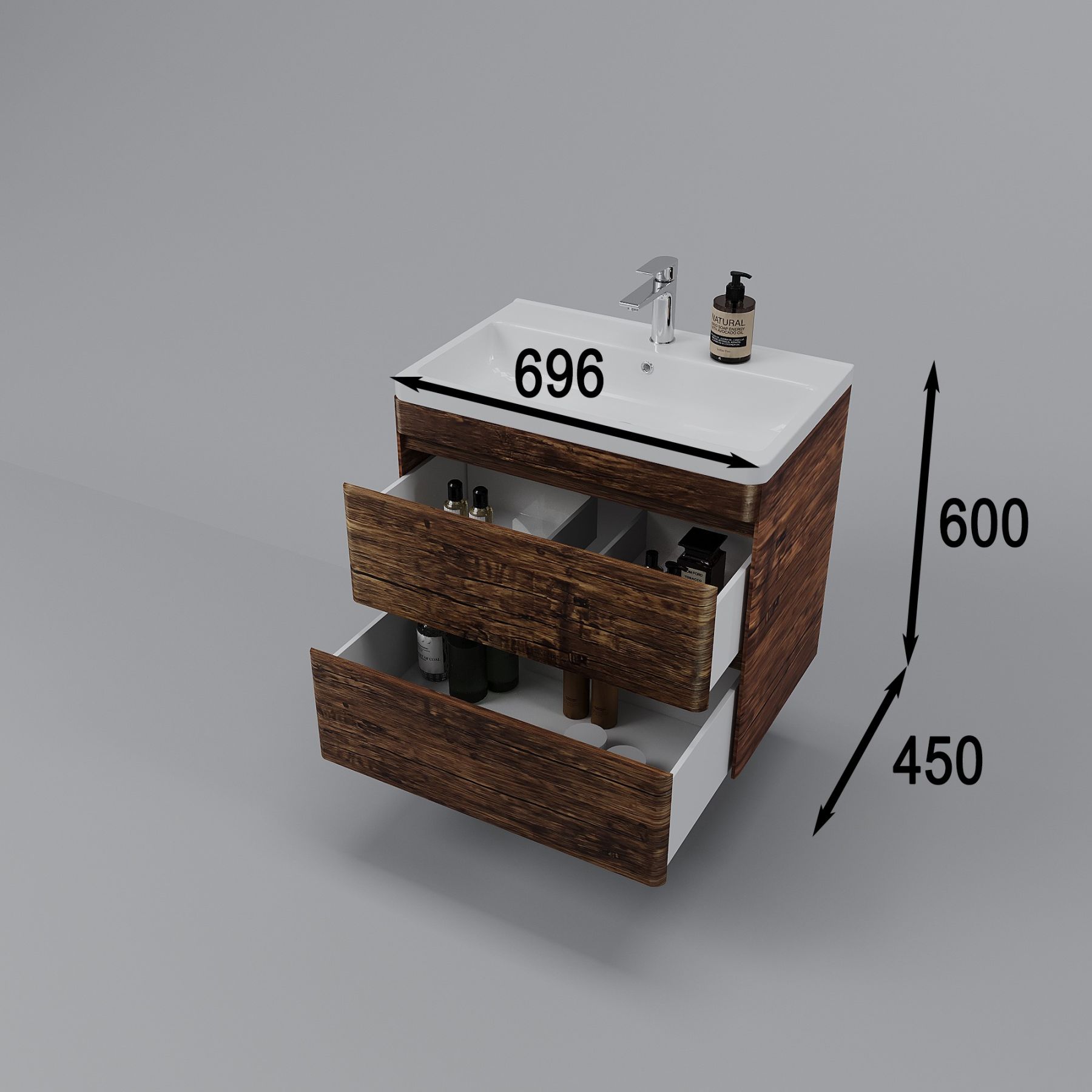 Тумба под раковину Style Line Атлантика 70, СС-00002340, 70 см, подвесная, Люкс Plus, старое деревоРаковина приобретается отдельно.