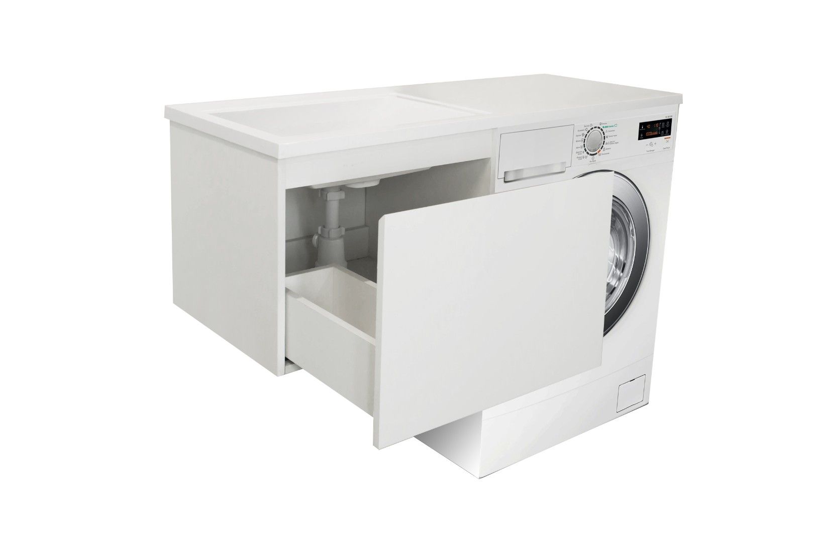 Коллекция мебели для ванной комнаты Dallas Luxe покоряет своей удивительной простой и функциональностью. Тумба укомплектована раковиной из литьевого мрамора с удобной чашей, стиральная машина устанавливается под столешницей. Широкий и вместительный ящик предназначен для крупных предметов. Подвесная система монтажа позволяет более эффективно использовать пространство, не мешает уборке в ванной комнате.