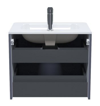 Компактная подвесная тумба с плоским умывальником Edifice стильного темно-серого цвета – воплощение современного минимализма. Мягкие линии корпуса в сочетании с удобными интегрированными ручками выглядят свежо и актуально. Смотрится аккуратно, легко и не усложняет процесс уборки в ванной благодаря подвесной конструкции.