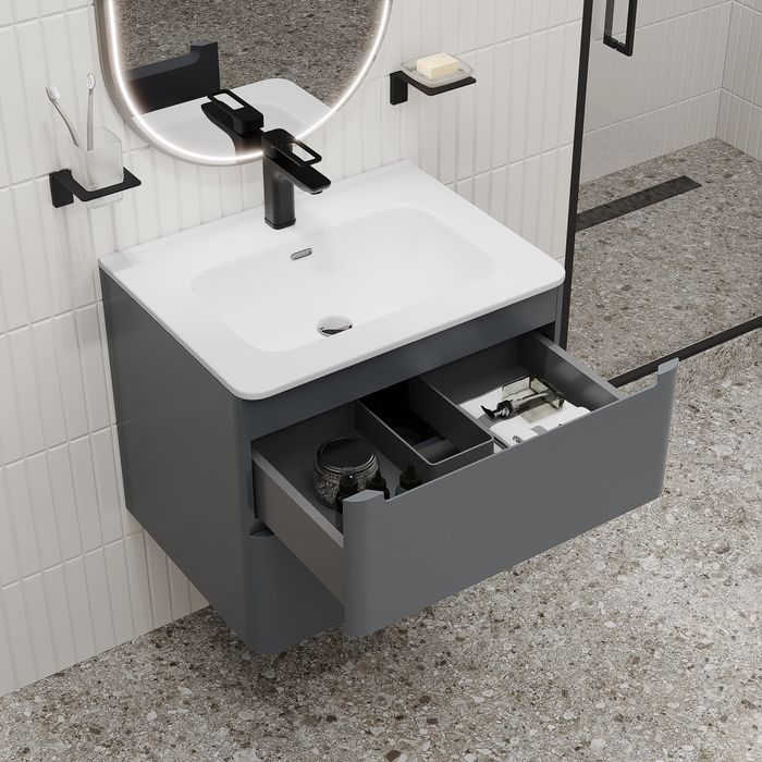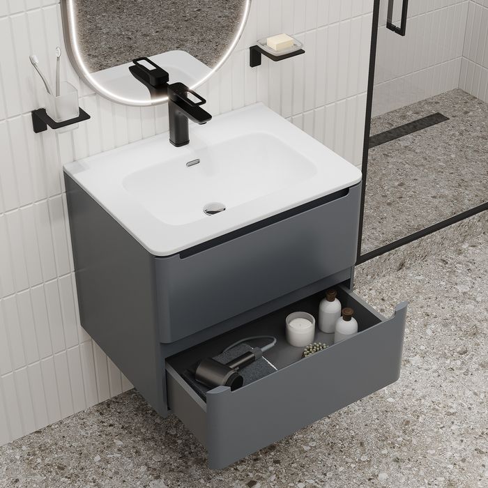 Подвесная тумба с раковиной IDDIS Edifice EDI60D0i95K 60см тёмно-серый купить