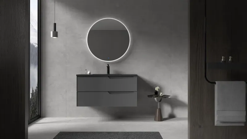 Подвесная тумба с раковиной Parly Spa Rhea100 чёрный матовый