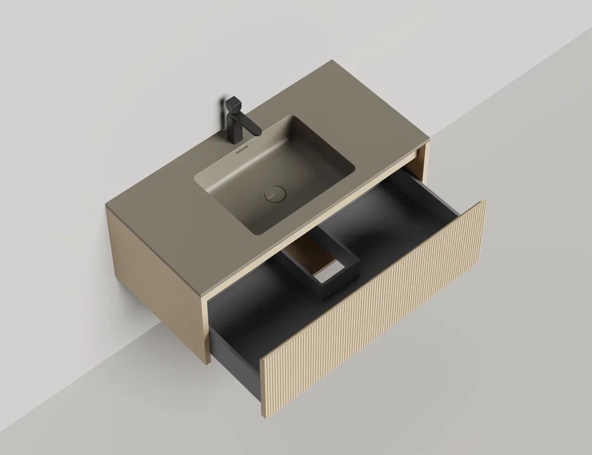 Наполнение для тумбы включает: блоки ячеек для тумб, коврики и комплект внутренней подсветки, которые помогут организовать пространство и создать более удобный доступ к вещам.Тумба DOMINO, дополненная столешницей COSTA из каменного литья S-Stone, гарантирует практичность и простоту ухода.