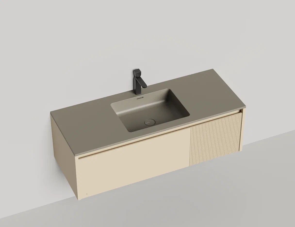 - Тумба и столешница из материала S-Stone в сборе (накладные раковины укомплектованы донным клапаном и поставляются в отдельной коробке)