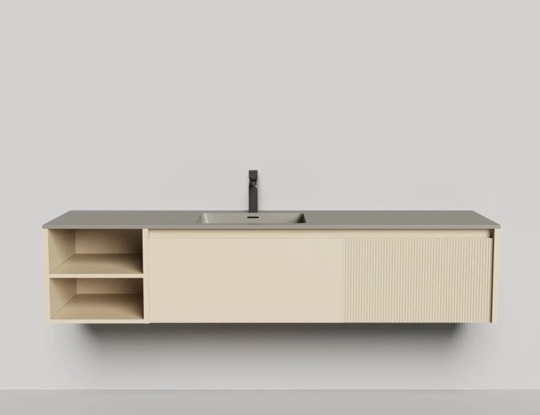 Наполнение для тумбы включает: блоки ячеек для тумб, коврики и комплект внутренней подсветки, которые помогут организовать пространство и создать более удобный доступ к вещам.Тумба DOMINO, дополненная столешницей COSTA из каменного литья S-Stone, гарантирует практичность и простоту ухода.