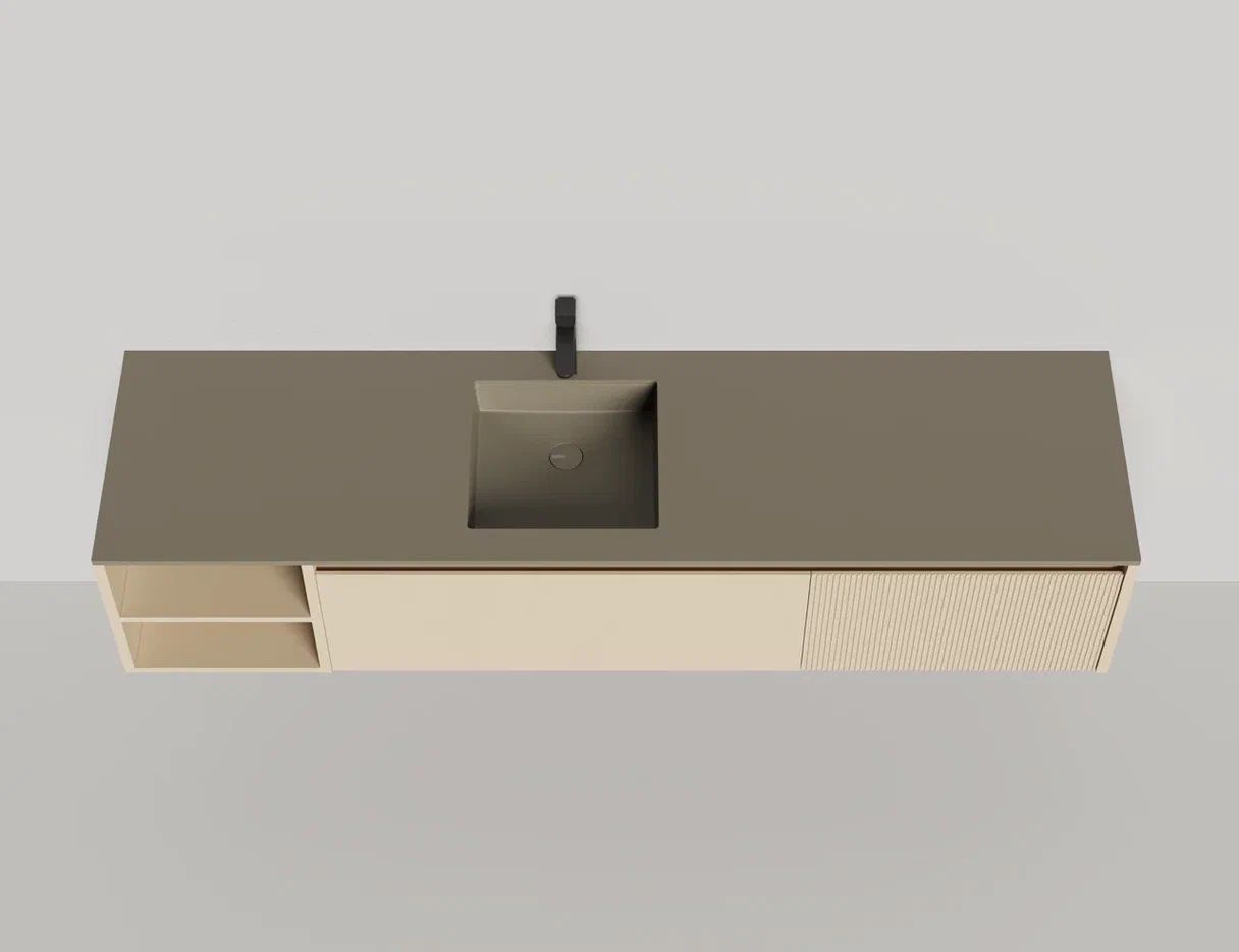 Наполнение для тумбы включает: блоки ячеек для тумб, коврики и комплект внутренней подсветки, которые помогут организовать пространство и создать более удобный доступ к вещам.Тумба DOMINO, дополненная столешницей COSTA из каменного литья S-Stone, гарантирует практичность и простоту ухода.