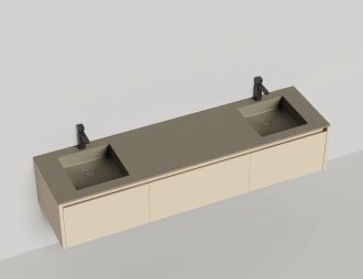 • Тумба и столешница из материала S-Stone в сборе (накладные раковины укомплектованы донным клапаном и поставляются в отдельной коробке)