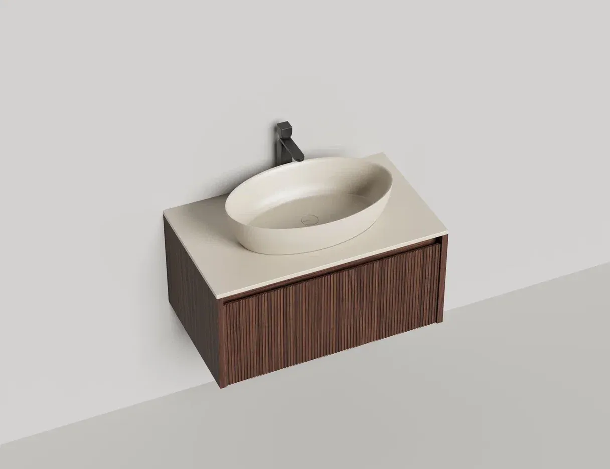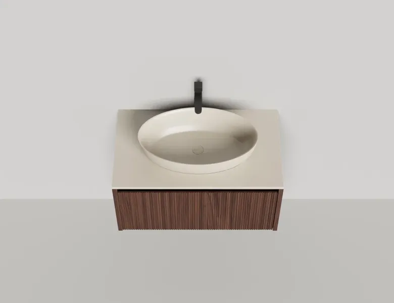 - Тумба и столешница из материала S-Stone в сборе (накладные раковины укомплектованы донным клапаном и поставляются в отдельной коробке)