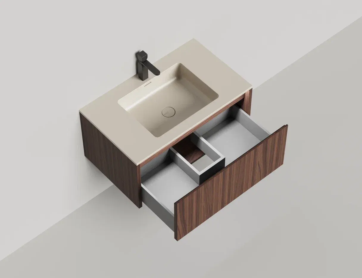 Наполнение для тумбы включает: блоки ячеек для тумб, коврики и комплект внутренней подсветки, которые помогут организовать пространство и создать более удобный доступ к вещам.Тумба DOMINO, дополненная столешницей COSTA из каменного литья S-Stone, гарантирует практичность и простоту ухода.