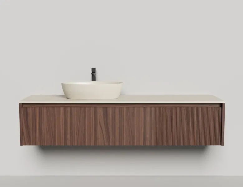• Тумба и столешница из материала S-Stone в сборе (накладные раковины укомплектованы донным клапаном и поставляются в отдельной коробке)