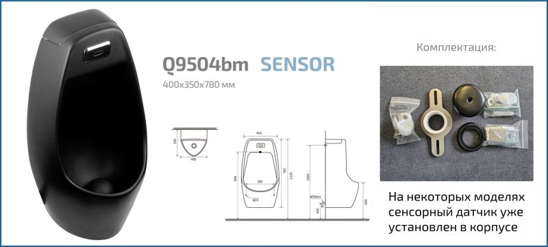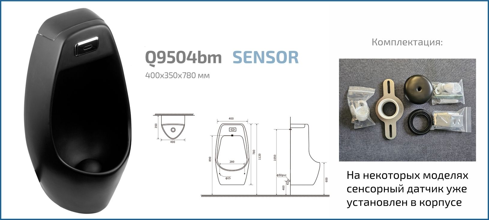 Подвесной сенсорный писсуар Gid Q9504bm 91109 черный матовый 40x35x78 купить