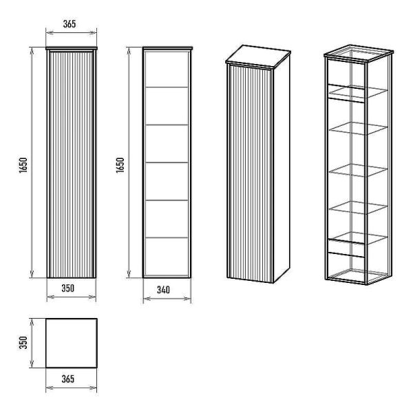 Габариты (ШхВхГ): 365х1650х350 мм.