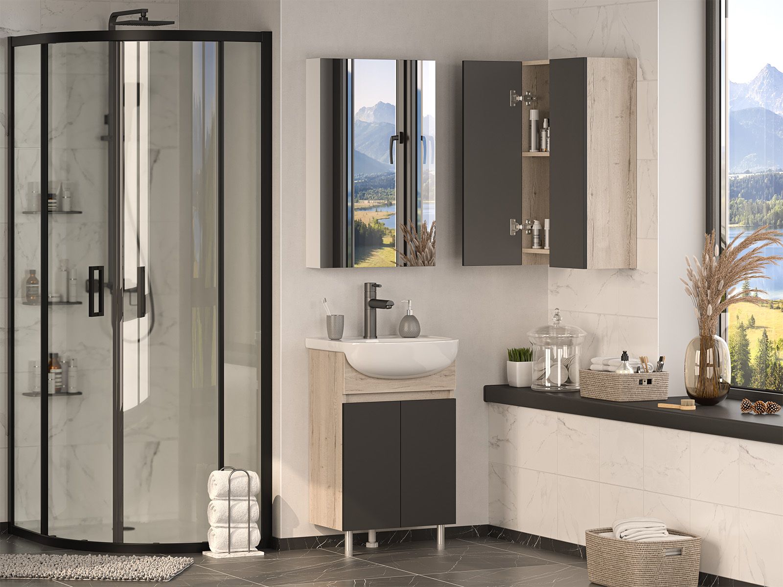 Подвесной шкаф Misty Поло 50см универсальный антрацит/дуб Галифакс белый