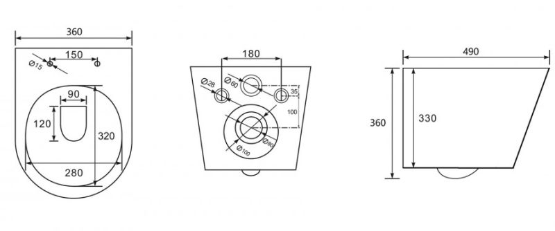 • Укороченный унитаз: