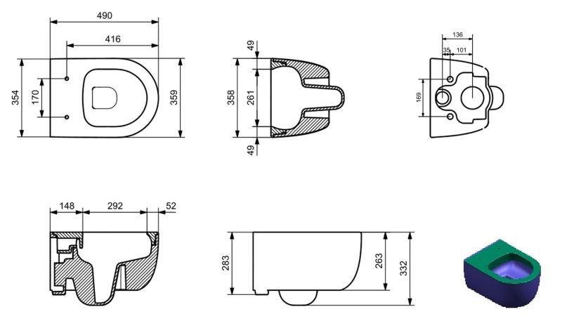 • Укороченный унитаз: