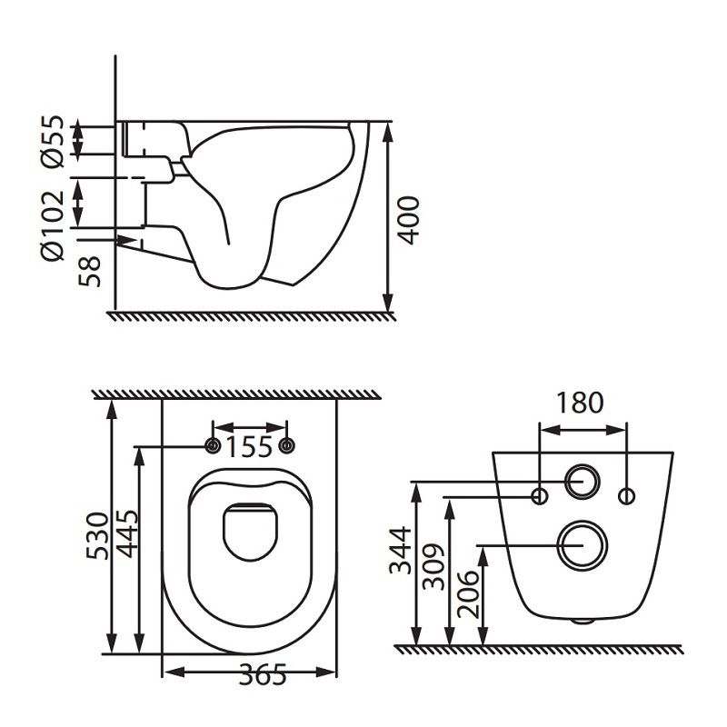 • Укороченный унитаз: