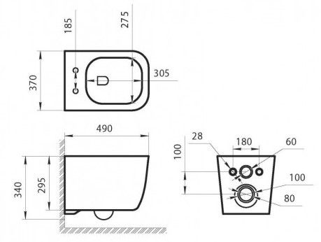 • Прилегание унитаза к стене: