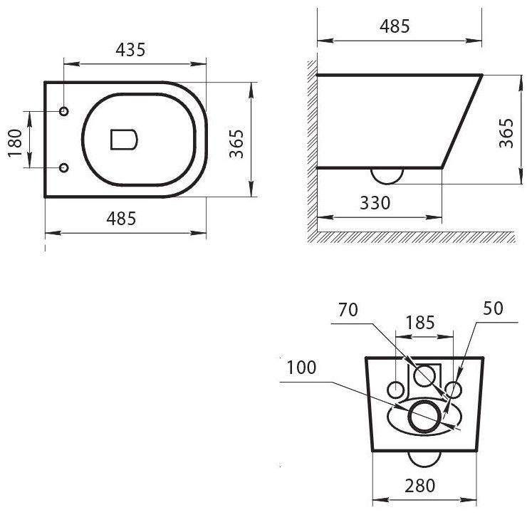 Подвод воды:определяется системой инсталляции