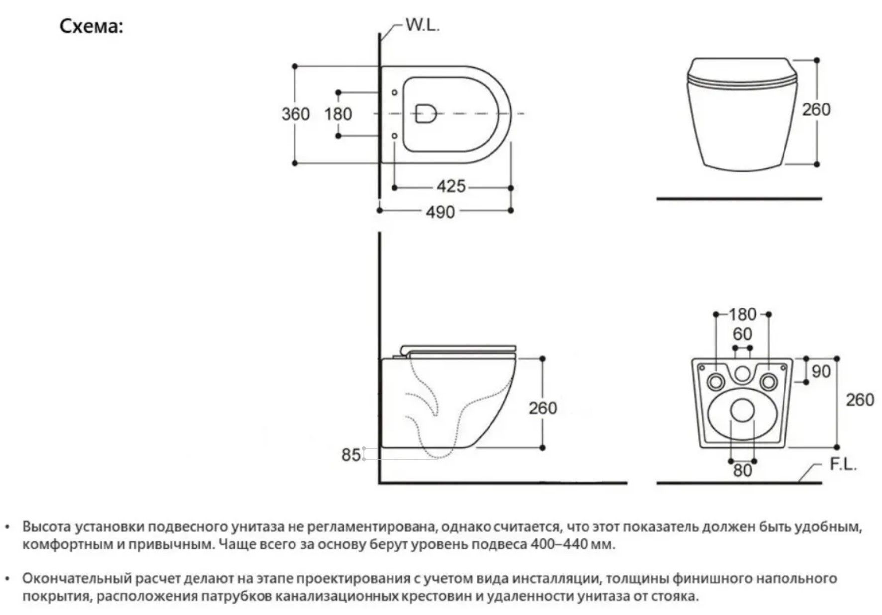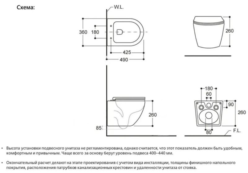 - Режим смыва воды:определяется системой инсталляции