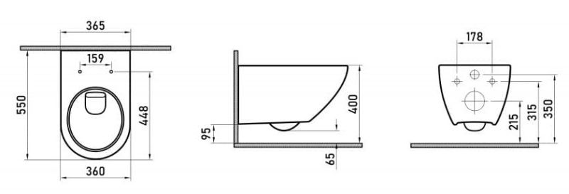 • Прилегание унитаза к стене: