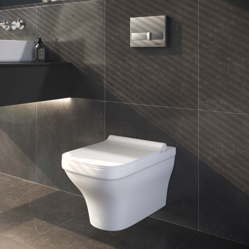 Подвесной унитаз Berges Strati белый 082132 сиденье Strati SO микролифт быстросъёмное