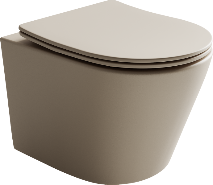Подвесной унитаз Balearica Rimless (цвет Капучино Матовый), глубокий смыв, с крепежом для полностью скрытого монтажа, ультра тонким с сидением и крышкой с функцией плавного закрытия, дюропласт