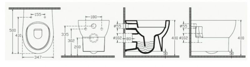 Прилегание унитаза к стене:вплотную