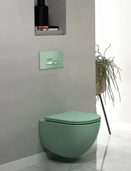 Подвесной унитаз Isvea Infinity 10NF02001SV-2T безободковый крышка микролифт мятно-зелёный матовый купить