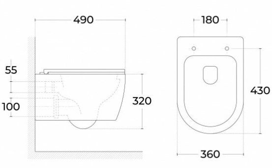 • Прилегание унитаза к стене:
