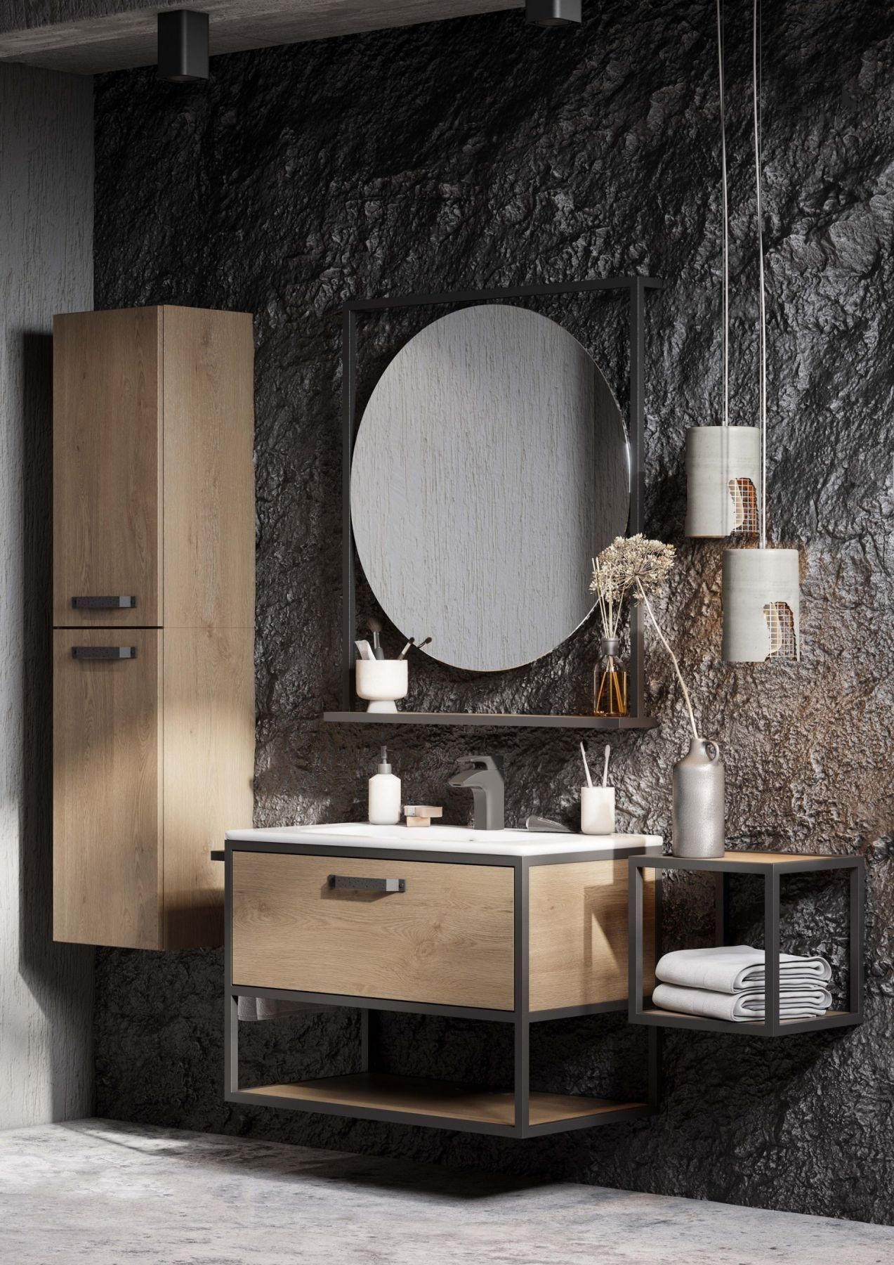 - Она идеально подойдет для того, чтобы расставить в ванной комнате четкие акценты в дизайне и обеспечить дополнительное место для хранения