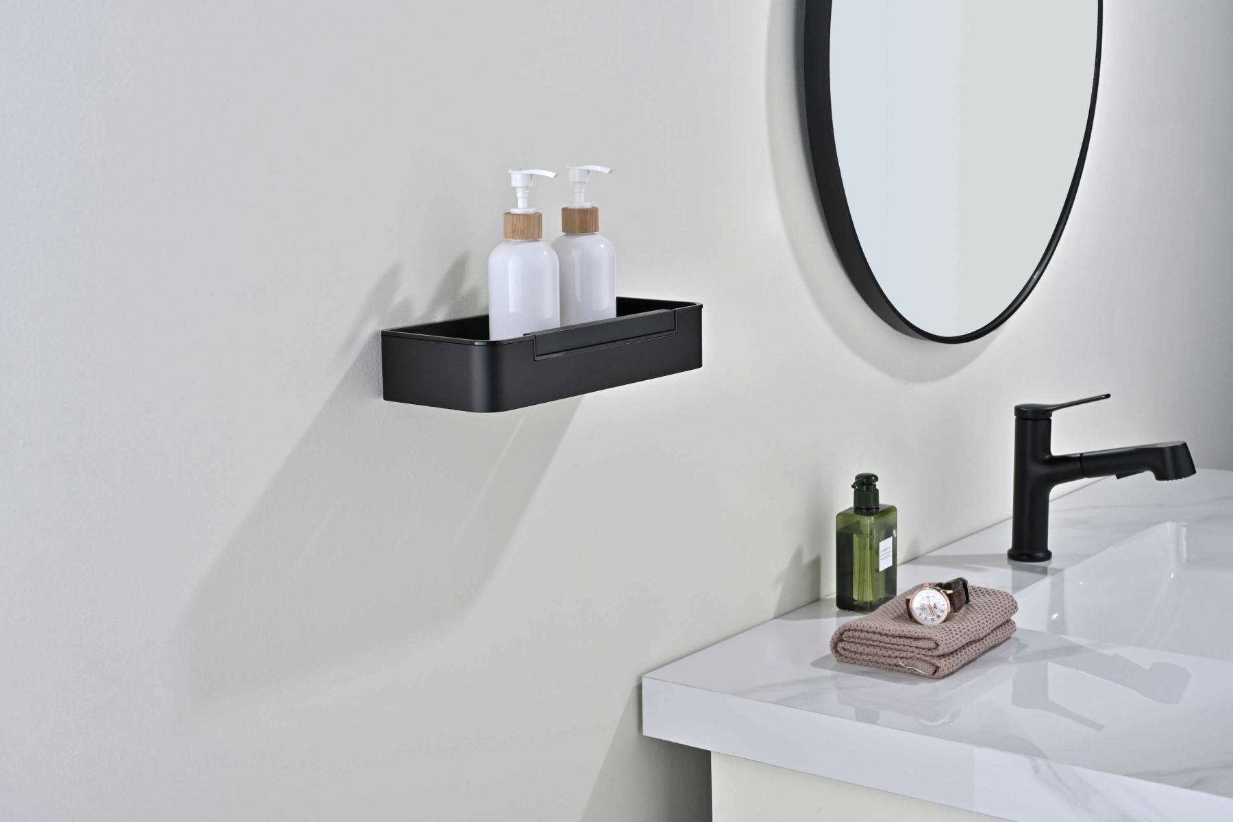 Полка для душа Aquatek AQ4966MB со стеклоочистителем чёрный купить