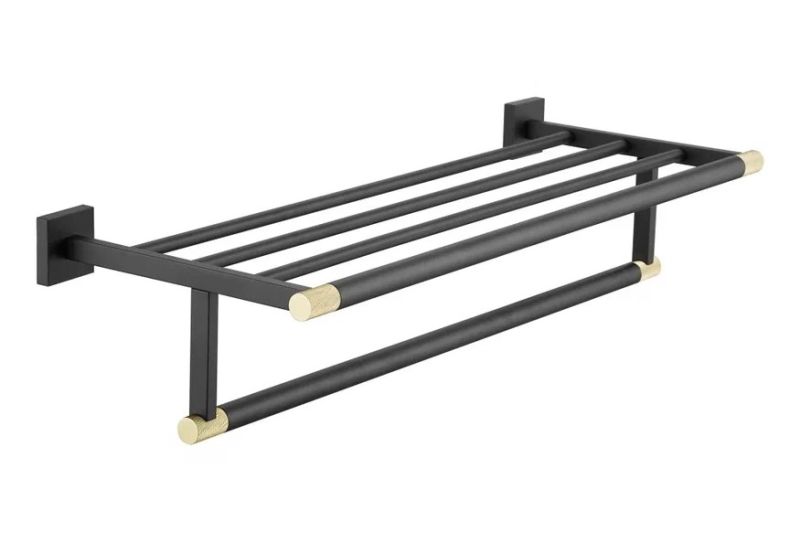 Полка для полотенец Rose RG3008H, золото/черный.