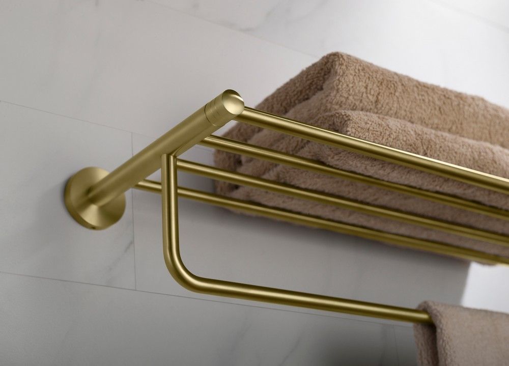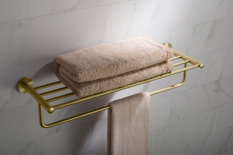 Цвет "матовое золото" никогда невыйдет из моды, во все времена драгоценный металл был признаком богатства.Полка Timo Saona 13058 - практичный аксессуар, который дополнит интерьер в ванной комнате. Для сушки полотенец используют нижнюю перекладину, а верхняя полка является удобным местом для их хранения. Аксессуары для ванной комнаты и туалета - важные составляющие комфортной и продуманной обстановки.
