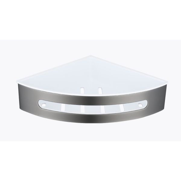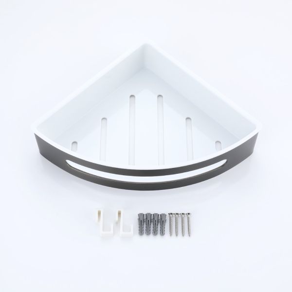 Полка для ванной комнаты угловая Raglo R340.01.09, графит. Размер: 24,5x22x6,5 см. Тип крепления: на болтах. Материал: нержавеющая сталь, авс-пластик.