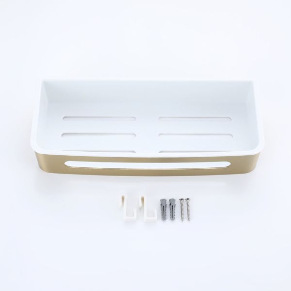 Полка для ванной комнаты Raglo R340.02.03, золотой сатин. Размер: 30x13x6,5 см. Тип крепления: на болтах. Материал: нержавеющая сталь, авс-пластик